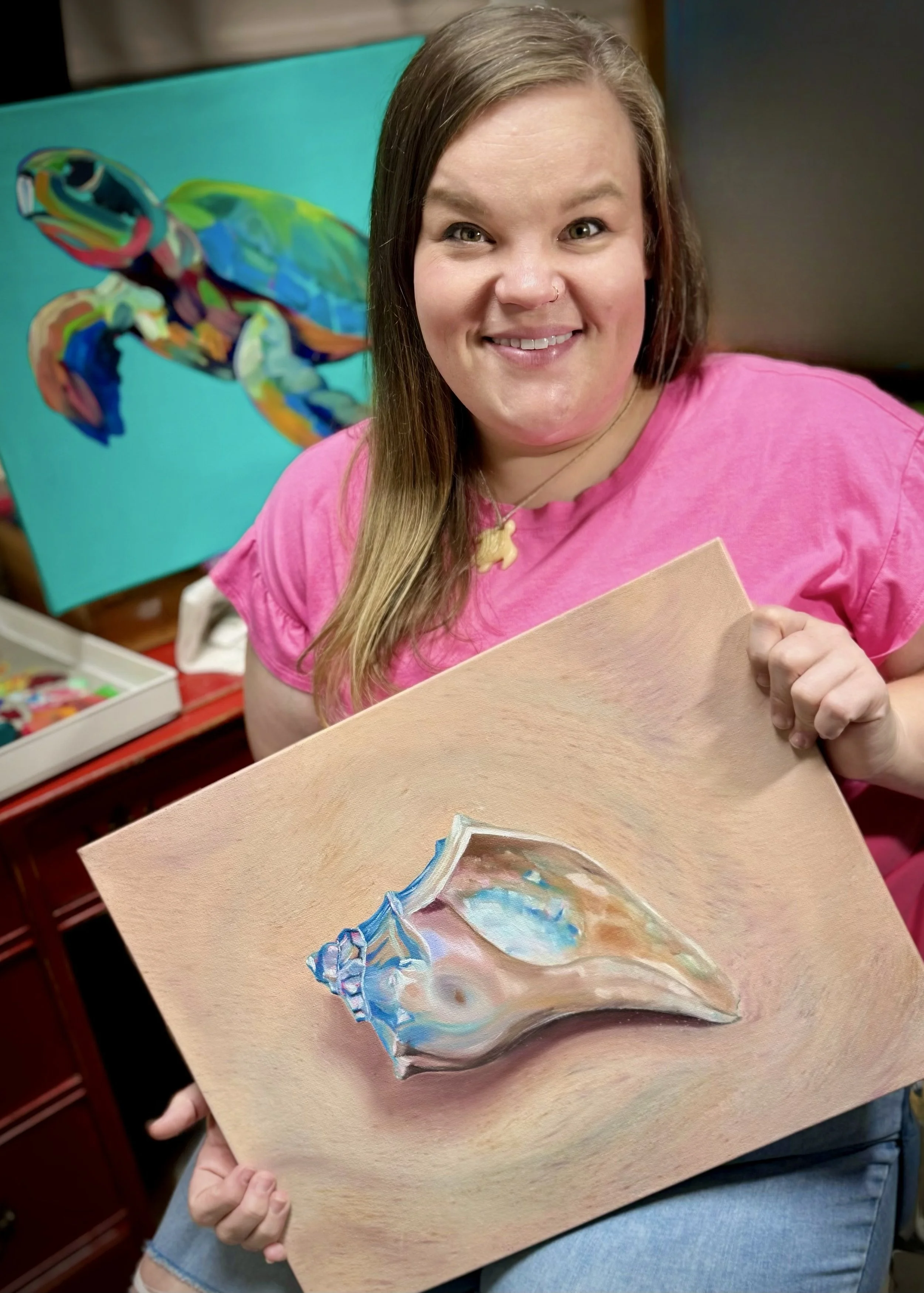 I’m inspired by coastal living, local stories, and the joy of turning everyday places into something a little more magical. Whether it’s a storefront window, a restaurant wall, or a seasonal display, I love using bold colors, playful details, and expressive brushwork to create art that feels vibrant, welcoming, and full of personality.